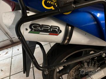 Vendo Varadero Honda 1000 del 2001- moto con 120.000km, con scarichi GPR albus, freccie LED, mono Ohlins più 2' molla, molle anteriori progressive Hyperpro, telaio paramotore, faretti led, filtro aria BMC, catena corona pignone nuovo, paraspruzzi posteriore , cupolino maggiorato, gommata al 95%, tagliando appena eseguito, tris valigie compreso moto perfetta e presenti i pezzi originali se la si vuole far diventare storica. Calcolate che solo il mono ohlins costa 700 euro , lo scarico GPR costa oltre 400 euro e le molle hyperpro costano 150 euro, catena corona pignone nuovo 300 euro