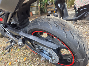 Moto depotenziata solo a libretto ha 25 kw. Veicolo tagliandato ogni 3000 km, ha 42000km eseguiti frizione e molle ebc, tagliando con motul 7100 10w50 e filtro aria bmc,motorino avviamento, batteria yuasa nuova e regolatore di tensione con smontaggio pompa benzina e cambio filtrino pompa(con foto per verifica), molle forcelle ohlins e steli nuovi causa vecchi steli con un po di ruggine, gomme michelin power 5 al 60%.La moto presenta 2 bozze sul serbatoio di sx e una con graffio serbatoio dx. Apparte queste due piccolezze la moto è in perfette condizioni. Per informazioni chiamare o scrivere al 3338552664 Davide