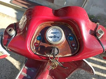 Praticamente nuovo 5500km sempre garage uniproproprietaria dal 1998 ho perso il libretto ma ho denuncia dello smarrimento. Per girare deve fare collaudo. Può essere classificato come scooter d'epoca e paga poca o niente assicurazione. Va acceso perchè batteria scarica (se lo rimetto in moto io il prezzo esposto sale a €600, se lo fate voi il prezzo è quello indicato). Niente sconti, no perditempo, no fratelli zie e sorelle che passano a saldare, niente corriere di nonna. Visto e piaciuto, vendo a Fiano Romano (RM).
