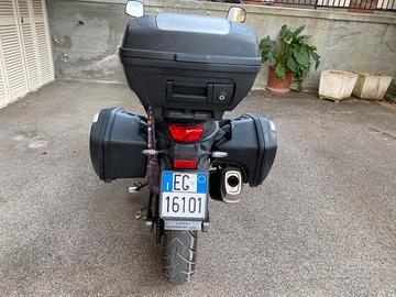 Vendo moto Suzuki VStrom 650 ottime condizioni completa di accessori Unico proprietario, anno di costruzione 2017, km 15.300, cambio pneumatici giugno 2024, ultimo tagliando 12.05.25, bollo pagato febbraio 2025, n. 2 chiavi originali Suzuki, due valigie laterali e un bauletto originali Suzuki complete dí schienale, manopole riscaldate e paramani, telaio paramotore, faretti aggiuntivi e frecce led, copricatena in alluminio, cavalletto centrale e laterale, allarme originale Suzuki con 2 telecomandi