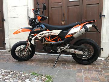 KTM 690 SM, anno 2010, km 53000, doppia immatricolazione, molti accessori: cupolino Twalcom, serbatoio supplementare da 6L RadeGarage, portapacchi Twalcom, portatarga e molto altro. Catena, corona, pignone nuovi, frizione nuova, ruote complete di dischi e corona da enduro.