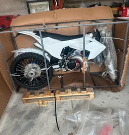 Moto 125 2 tempi - NUOVA di zecca (scartata e montata): perfetta per off-road/cross o adattamento stradale. Montato solo manubrio e ruota anteriore per la messa in strada.
