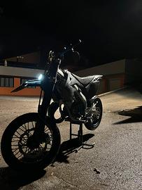 vendo hm 100 fa2st il motore monta: -gruppo termico 100 fa2st con pistone nuovo -albero motore 2fast nuovo -accensione selettra malossi mhr team 2 -piattelo di appesantimento da 320g -marmitta dbr superfast -terminale nero in carbonio forgiato dbr -alzapacco 10mm krm azzurro -pacco lamellare vforce 3 kx85 -collettore stage 6 34mm azzurro -carburatore polini pwk 34mm -cestello top performance denti dritti -frizione katrace 2023 6 molle -desmodromico top performance in ergal -selettore top performance -forchette rinforzate -cambio seconda serie -sesta lunga top performance estetica: -plastiche cr 125 2002 nere -piatta del sx 65 -parafango anteriore del sx 65 -faretto a led -leve blu -manubrio protaper blu -paracolpi renthal -cerchi in finto carbonio blu e raggi blu -sella nera -forcelle in finto carbonio nero -tacchimetro stage 6 con sonda di scarico -impianto elettrico a batteria perfettamente funzionante -doppio radiatore malossi -tubi radiatore blu inoltre cedo anche impianto elettrico originale,gruppo termico originale,albero originale, accensione originale,gruppo frizione originale,aspirazione originale,marmitta+terminale originali,leve originali,un lit di grafiche rosse,coprisella originale, parafango e mascherina con faro originali valuto scambio con 125 TARGATO per qualsiasi informazione scrivetemi