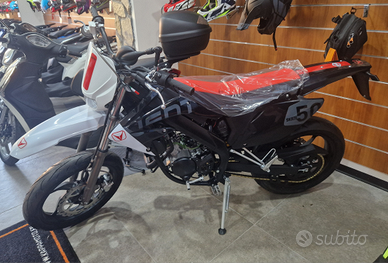 La più avanzata motorizzazione Minarelli 50cc 2 T, con telaio perimetrale derivato dalle moto da cross e un potente impianto di frenata, rendono questo mezzo sicuro, affidabile e di qualità.
