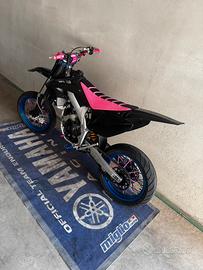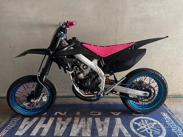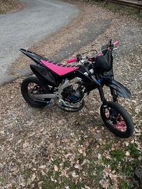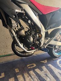la moto si presenta come mostrato nelle foto… la moto monta un gruppo termico top 86, con un carburatore da 28 pwk polini e con una marmitta krm 80-90 a passaggio basso, il motore come chilometraggio ha circa 500 ore totali con manutenzione regolare fatta ad essa.