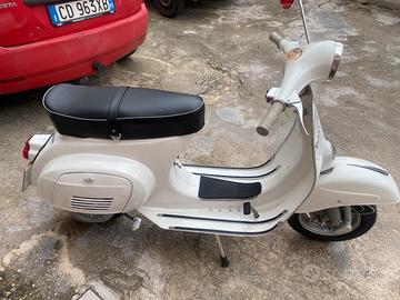 Vespa 125 primavera del 1974 con cdp libretto a paginette da passaggio di proprieta’ . Completamente restaurata:sabbiata,motore nuovo, a corredo tutte le foto con le varie fasi del restauro prezzo non trattabile