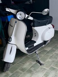 Vespa 125 primavera anno del 78 targata Milano restauro totale bianco spino motore preparato con 140 quatrini volano alleggerito frizione denti dritti rinforzata rapporti cambio lunghi non scambio X chi non li piace il motore preparato o il suo blocco originale completo di tutto intero solo da montare compreso dí carburatore 19-19 compreso nel prezzo totale X info Renato