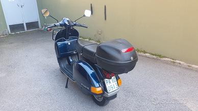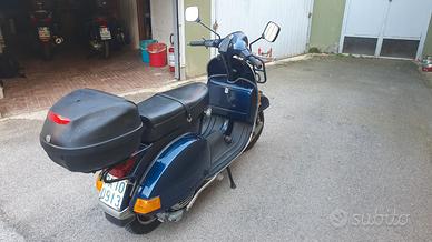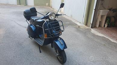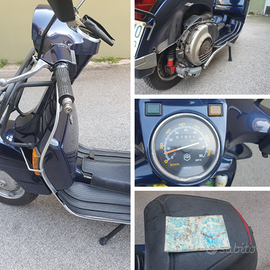 Vendo Vespa 125 PX 08-1981. Di fatto unico proprietario, in quanto il primo intestatario è stato mio padre ma sempre utilizzata da me. Perfettamente funzionante in tutto. Regolarmente revisionata e circolante. Libretto di circolazione e targa originali risalenti alla sua immatricolazione. Libretto uso e manutenzione e attrezzi originali. Sempre curata negli anni. Blocco motore mai aperto. Circa 25 anni fa cambiati fasce e pistone. Compressione eccellente. Frizione originale e perfetta, impianto elettrico perfettamente funzionante. Portapacchi anteriore, bauletto posteriore, bloccasterzo aggiuntivo esterno attaccato al manubrio, tappetino, cavalletto e copri frecce nuovi. Originale in tutto. Completamente riverniciata circa 25 anni orsono in colore blu notte (il suo è il classico azzurro metallizzato dell’epoca). Ripresa la verniciatura un paio di anni fa. Pneumatici cambiati da un paio di anni. Non occorre alcun intervento significativo, se non, se si vuole, la riverniciatura nel suo colore originale e la revisione dell’ammortizzatore anteriore. Insieme al mezzo fornisco diversi ricambi ossia: Sella nuova di ricambio, bordo metallico dello scudo, tachimetro originale nuovo a km zero, marmitta di ricambio usata e funzionante, corpi frecce e plastiche gialle nuovi (tranne posteriore dx già montati), cupolino strumentazione con relative spie nuove, paraspruzzo posteriore, guarnizioni bauletto anteriore e cofani, targa replica uguale all’originale, blocca ruota anteriore (abbastanza raro), perno antifurto ruota anteriore (introvabile), catenacci antifurto per cofani laterali (abbastanza rari), dosatore miscela, 3 litri di olio per miscela, qualche candela nuova di ricambio, paravento. Il tachimetro segna circa km 62.000; il vecchio ne segnava circa km 50.000, per un totale di circa km 112.000. Vendo per mancato utilizzo. Visto il particolare stato d’uso del mezzo ed i ricambi che fornisco, non svendo. Doppie chiavi di tutto. Perfettamente iscrivibile ASI.