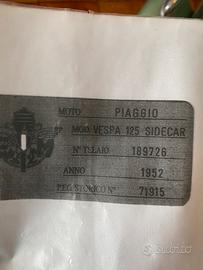 Fantastica e rara Vespa 125 sidecar 1952 A libretto Iscritta FMI Accessori rarissimi Funzionante Spettacolare ! Disponibile anche Vespa bacchetta sidecar (30k) Ape calessino (50k) Perfetti Con doc