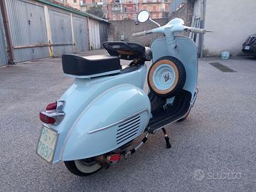 Piaggio Vespa 125 VNB del 1962, accessoriata ( sella passeggero, pedana laterale, e ruota di scorta ), condizioni definibili perfette sia di carrozzeria/telaio/estetica tutta che di meccanica, restaurata totalmente nel 2018 in originalità, tenuta molto più che bene, gli ultimissimi lavori eseguiti recentemente sono serbatoio nuovo, ruota completa posteriore nuova, pulizia carburatore, controllo generale, candela nuova, e sostituzione filo acceleratore, iscritta al club A.M.C.N.N. nel 2018 ma non più rinnovato, libretto nuovo, targa originale, al momento non in uso ma messa in moto e fatta girare periodicamente al fine di conservarla al meglio e pronta all'uso, si vende ad € 5.200,00 "irriducibili" ( vale di più ) più costo trasferimento di proprietà. Foto del momento. Possibilità di valutare eventuale permuta "parziale" ultratrentennale di proprio gradimento ( nel caso inviare messaggio "dettagliato" e con foto eloquenti ). Astenersi perditempo, contattare solo se realmente interessati e decisi