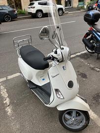Vespa 150LX bianca sella nera, più che buone condizioni generali sia meccaniche che di carrozzeria, tutti tagliandi Piaggio regolari, tenuta in garage, piccoli graffi alla carrozzeria dovuti all'usura. Optional: parabrezza, portapacchi cromato posteriore, tappetini in gomma, catena chiusura.