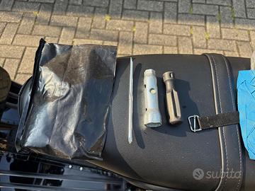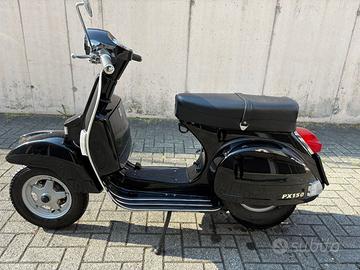 Vendo la mia splendida impeccabile Vespa PX 150 del 2007 con carrozzeria in condizioni perfette, come uscita dalla concessionaria. Totalmente originale, acquistata da me nuova e utilizzata da mia moglie. All'epoca l'omologazione era a libretto con cilindrata 151 cc. per poter circolare anche in autostrada e/o nelle tangenziali, mentre oggi non è più necessario per modfica Codice della Strada cha ha portato il limite a 125 cc. Sostituita la calotta copri faro (l'originale con fori per 2 specchietti è presente e perfetta) perché avere 2 specchietti come nella prima foto non mi piaceva. Sostituita sella con modello decisamente più confortevole. Accessorio tappetino in gomma e ruota di scorta. Trousse attrezzi originali presenti (chiave candela + cacciavite doppia funzione). Nel vano porta oggetti presente predisposizione attacco di corrente per ulteriori accessori. Naturalmente saranno consegnate: 1. sella originale sagomata colore marrone 2. secondo specchietto originale 3. calotta per alloggiamento due specchietti originali. Un vero conservato con già 19 anni, il prossimo anno può essere iscritta ASI o FMI. In caso di conclusione e vendita, consegno con revisione fatta a mie spese in quanto voglio vendere un mezzo idoneo alla circolazione. Inoltre, con carrello personale, posso consegnare gratuitamente nel raggio di 100 km. da Treviso. Fabbricazione Italiana. Disponibili altre foto e video.