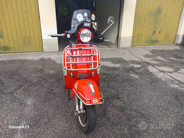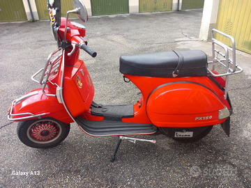 Vespa 150 px restaurata sia di carrozzeria che di motore rifatto ( colore scelto da mio padre non dell' epoca ) perfettamente funzionante con revisione eseguita , accensione elettronica che a pedivella più freno a disco tutto originale, nel caso scambio con vespa più moderna 300