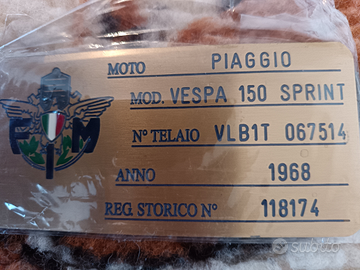 Causa inutilizzo vendo vespa 150sprint iscrizione registro storico solo contatto telefonico o whatsapp no mail numero 3387810302