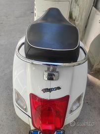 Vespa 300 GTS – 2009 Immatricolata: Giugno 2009 Km: VERI – NO FAKE Vendo Vespa 300 GTS in ottime condizioni meccaniche, con tutti i lavori certificati e mantenuti in modo scrupoloso. Motore perfetto, pronto per essere utilizzato senza problemi. Di seguito i dettagli: Lavori eseguiti: Cinghia, rulli e pattini sostituiti Pasticche freni nuove Supporto motore sostituito Pompa dell’acqua nuova Ammortizzatori posteriori nuovi Tagliando fatto a settembre 2025 Condizioni delle ruote: circa 70% di usura Sono disponibile a farla controllare da un meccanico di fiducia per chi fosse interessato. La Vespa è perfetta nel motore, ma la carrozzeria necessita di qualche intervento, quindi vi invito a considerare questo punto prima di contattarmi per evitare perdite di tempo.