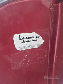 Vendo Vespa 50 Special Revival anno 1991, serie limitata numerata n.2067, prodotta in circa 3000 esemplari. Modello Revival realizzato da Piaggio per celebrare la storica Vespa Special, oggi sempre più raro e ricercato. La Vespa è completa e originale, mai restaurata, conservata con segni del tempo visibili in foto. Ideale sia per utilizzo dopo una semplice messa a punto sia come base per restauro conservativo. Condizioni: ● Motore completo e funzionante (disponibile video accensione) ● Struttura sana, mai incidentata ● Pedana solida con segni di utilizzo ● Vernice originale con segni del tempo ● Componenti originali presenti ● Sella in buone condizioni ● Libretto originale presente La Vespa viene venduta nelle condizioni attuali, vista e piaciuta. Disponibile per visione e prova. Posso inviare ulteriori foto e video su richiesta.