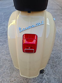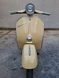 Restaurata da professionisti specializzati in restauro Vespa rimanendo fedeli al modello, telaio sabbiato e trattato con antiruggine. Motore completamente revisionato. Sospensioni, freni, impianto elettrico e gomme nuovi. Carrozzeria, colore, bloccasterzo e chiave, cerchi, attrezzi e documenti originali. Il resto ricambi dell'epoca o riproduzioni fedeli.