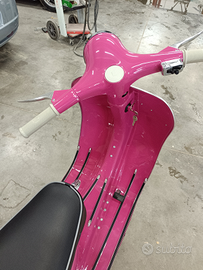 Piaggio Vespa 50 L anno 1967 telaio corto, la vera Rosa Shocking non verniciata perché rientra tra i telai, colore originale estremamente raro solo 110 pezzi prodotti di questa colorazione. Vespa restaurata maniacalmente sia di carrozzeria che motore, dal restauro non ha mai circolato con tutte le foto del restauro sia prima che dopo. Libretto originale dell' epoca a paginette. Vespa per veri collezionisti. Per info contattare.