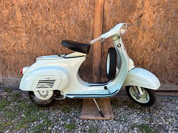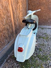 Vendo vespa 50 N sportellino piccolo Anno 1965 Colore Verde 1,298,6301 La vespa è stata restaurata completamente Telaio: Sabbiatura con sabbia fine Lavori di lattoneria sistemato ammaccature finitura verde (1,298,6301) tubo sterzo, mozzo,copriventola e cerchi ruota Colore Verde 1,298,6301 Motore: Motore aperto pulito e sabbiato con grana di vetro i carter (esterno) Sostituiti cuscinetti- paraoli -guarnizioni -oring -Cilindro originale con stemma Piaggio rettificato e sostituito pistone -albero motore revisionato suo originale con stemma Piaggio -crociera cambio 3 marce -cambio in buonissime condizioni (Il motore internamente componenti tutti marchiati Piaggio) Cuffia in metallo Mozzo anteriore/forcella -Sostituiti paraoli e cuscinetti Ammortizzatori: -anteriore revisionato (gommini nuovi e oring) -Posteriore sostituito con originale nuovo Impianto elettrico: -Sostituiti fili elettrici con nuovo per una maggior sicurezza. -Statore originale La vespa ha già la targa nuova, pronto per il passaggio di proprietà Per altre informazioni e foto contattatemi pure