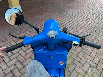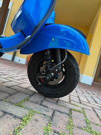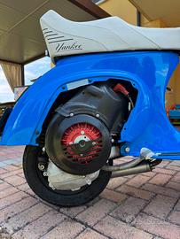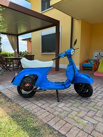 Vespa completamente rifatta da zero, partendo da un telaio di una vespa 50 R, motore quattrini 130 cc, freno anteriore a disco, faro anteriore a led circolare, con abbagliante, tachimetro digitale, cassetto portaoggetti, carburatore dellorto, marmitta S.G. Corse.
