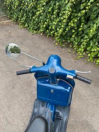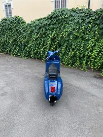 Vendo Vespa 50 R marca Piaggio. Colore blu scuro. 3 marce con faro tondo. Anno immatricolazione 1974 in mio possesso da 20 anni. Ottimo stato tenuta coperta in garage completamente restaurata e solo con pezzi originali Piaggio. Comprensiva di bauletto porta oggetti, blocco sterzo, numero 2 chiavi, sella nera lunga. Eventuale (ma staccato) pota pacchi con ruota di scorta. Vespa in regola con targa nuova, libretto e documenti. Ogni eventuale spesa extra (tra cui passaggio proprietà) a carico del compratore. Alcuni piccoli segni sulla carrozzeria, pertanto il prezzo potrebbe essere trattabile.