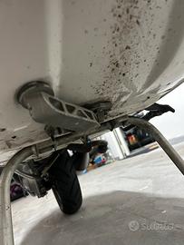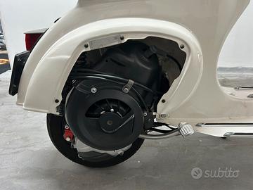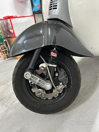 Vespa 50 special anno 04/1983, 4 marce, sigla motore V5A4M con carter gemelli. Restaurata con colore originale Piaggio "biancospino" codice 715. Vespa rinforzata con classico tondino di ferro da 6 mm intorno alla carrozzeria. Monta faro a led ant e post perfettamente funzionanti con anabbaglianti e abbaglianti all anteriore e doppio stop posteriore, kit termico parmakit challenger d.57 in alluminio aspirato al cilindro, carburatore 24 vhsh dell orto, pacco lamellare V-force 3 della tassinari, ventola alluminio cnc della fabbri, marmitta mdm marri calcolata al motore, pignone e corona polini 27/69 con cluster della parmakit quarta corta, crociera parmakit modello al nicasil, albero motore vmc spalle piene corsa 51. Preciso che il cilindro è stato elaborato da noto elaboratore di zona cosi come tutte le regolazione effettuate da elaboratore. Come ciclistica monta sosp anteriori della yss, posteriore della carbone (entrambi regolabili), gomme nuove della dunlop, cerchio posteriore della sip tubeless non scomponibile, forcella anteriore proveniente dallo zip con freno a disco, disco a margherita tutto fatto su misura. Sella biposto. Dispongo di tutte le componenti originali. Visibile in zona san prisco e limitrofe. Prezzo poco trattabile dopo visione.