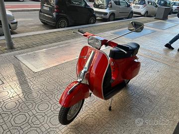 Vespa 50 special prima serie V5A2T (1969 - 1972), motore a due tempi, tre marce con rapporto primario di 18/67, accensione a volano magnete, colore rosso corallo, completamente restaurata sia a livello di meccanica che di carrozzeria come è possibile vedere dalle foto. Si precisa che sono stati utilizzati tutti pezzi originali Piaggio.