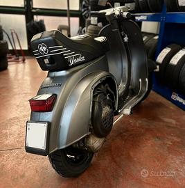 Vendo vespa per inutilizzo 1000km funzionante, ottime condizioni, è stato fatto blocco motore nuovo un anno fa motore 102 olimpia marmitta vmc racing carburatore 19 dell orto filtro scatola polini sella yankee vernice grigio opaco bmw contachilometri originale