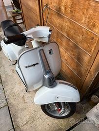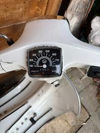 Vendo vespa 50 special V5B3T del 1980 con libretto Vespa sanissima, vernice in buone condizioni a parte de normali segni di utilizzo. Motore completamente ricostruito con gruppo termico 102 Polini, carburatore SHBC 19.19 dell'orto revisionato. Carter gemelli originali 4 marce pallinati e lavati. Rapporti 22/63 del 90ss, Coperchio frizione leva lunga, crociera nuova, ingranaggio avviamento nuovo, dischi frizione nuovi 4 dischi e molla rinforzata, cuscinetti, paraoli e guarnizioni nuove, pedivella nuova. Freni anteriore e posteriori nuovi (ganasce in composito) Ammortizzatori anteriori e posteriore nuovi. Mozzo anteriore con cuscinetti nuovi e forcella revisionata con serie sterzo nuovi e gabbia rulli nuove. Cerchi 10" sabbiati e riverniciati con gomme e camera d'aria nuove Impianto elettrico nuovo, cavi e guaine nuovi, nasello nuovo. Contachilometri nuovo fondo scala 120 con ingranaggio nel mozzo nuovi. Cavalletto nuovo e cresta parafango nuova. Faro anteriore e posteriore nuovi omologati. Marmitta PROMA NUOVA Accensione elettrica nuova Si accende al primo colpo. Vendo per inutilizzo