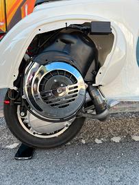 Vendo vespa 50 special 4 marce. Il motore è stato appena finito quindi deve essere ancora rodato. Vendo per avere modo di iniziare un altro preparazione. Non svendo quindi si prega di non fare proposte senza senso. NON SI TRATTA DI ASEMMBLAGGIO FATTO CON IL MARTELLO STILE AMMIOCUGGINO. Elenco componenti: -Gruppo termico Polini evolution 2 d58 montato girato con aspirazione al carter -carter SIP EVO con sedi dei cuscinetti rullate con tolleranza a 3 centesimi. Barenati e lavorati appositamente per questa configurazione da Marco Rover. -scarico Marri MDM artigianale appositamente calcolato e specifico per cilindro girato -carburatore Dell'Orto VHSB 34 -filtro aria FABBRI -Collettore lamellare Fabbri per aspirazione al carter compatibile con cilindro girato -pacco lamellare derivazione Honda CR 250 -accensione Polini evolution digitale con 4 mappature di erogazione volano 1,1 Kg -albero motore FALC a spalle piene specifico per aspirazione al carter -frizione FALC a 16 molle -cestello frizione FALC ricavato dal pieno -campana frizione FALC 72 denti -pignone Benelli 26 denti -cluster quadruplo Crimaz 10-14-17-20 terza e quarta corta. -selettore marce FRT tutto ricavato dal pieno -albero ruota posteriore rinforzato Benelli (viene utilizzato anche nel Vespa cross) -crociera rinforzata Benelli -ingranaggio avviamento nuovo -leva messa in moto per cilindro girato -Ganasce freno posteriore nuove -Forcella anteriore a disco -ammortizzatore anteriore Bitubo regolabile in precarico e compressione (12 click) -ammortizzatore posteriore Bitubo regolabile in precarico e compressione (12 click) -sella cafè racer -guaine e corde tutte nuove -gas rapido Tommaselli -batteria per funzionamento luci -Pedane racing in alluminio -cerchio posteriore SIP -cerchio anteriore zip tubless -parafango anteriore in vero carbonio con accesso al registro dell'ammortizzatore. Vernice Piaggio biancospino. Revisione appena effettuata. Disponibile per visione anche con meccanico di fiducia.