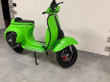 Vendo vespa 50 special quattrini, monta un 144 m1l, accensione pvl 40 di carburatore, e tutti i componenti interni Crimaz compreso il cambio! Motore con 30 cv dimostrabili! Il telaio è stato tutto rinforzato, verniciata verde opaco, freno a disco Crimaz con leve Crimaz! Ammortizzatore bgm, tutte le rifiniture sono in carbonio vero! Possibilità di provarla! Per altre info contattatemi!