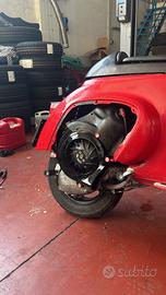 Vendo a malincuore splendida vespa 50 special, la vespa possiede tutti i pezzi originali dell’epoca( parabrezza, motore, forcella, sella, potralibretto, faro,etc) Al momento la vespa si presenta: Motore: 144 quattrini full power; (assemblato e lavorato interamente da Giorgio Saletti preparatore vespe) Carburatore: 39 dell’orto; Pacco lamellare cin lamelle in carbonio; Filtro fabbri; Espansione dpr full Testa e cilindro lavorati al tornio Frizione rinforzata a 12 molle fabbri Accensione pvl completa Cerchi tubles ant. e post. Gomma semislick anteriore 80% Gomma media al posteriore 75% Forcella zip cin freno a disco Parafango anteriore in carbonio Pompa freno idraulica crimaz Sospensione anteriore a gas bitubo Sospensione posteriore a gas yss Ammortizzatore di sterzo Sella monoposto in fibra di vetro e sella biposto modello yankee Faro led italkast Copri ventola artigianale in fibra di vetro per maggiore raffreddamento (vezzola racing) Al momento non ricordo le altre migliaia di migliorie e modifiche. Vendo per passaggio a moto. Scrivetemi su WhatsApp o chiamatemi al 3894856771 per maggiori informazioni sulla vespa. Prezzo 6400€ trattabili