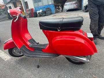 Vespa 50 special totalmente restaurata, sabbiata, cambiato scudo e pedane; revisionato carter, motore 75cc nuovo, carburatore, e marmitta nuova. Sella e gomme nuove. Non necessita di passaggio perché ha il libretto piccolo.
