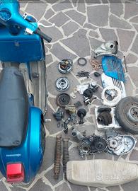Vespa piaggio 50 del 1967 come da immagine, attualmente motore et3 primavera 125 con 130 polini 7 travasi albero alleggerito condotti fresati, carburatore 19 pari. Scarico leovinci. Come da foto per restauro blocco motore completo 50 originale e tutto il necessario carburatore e cerchio.astenersi perditempo.