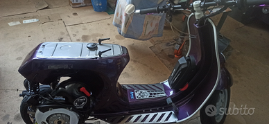 Vespa pk hp anno 1996 completamente trasformata con scudo special e posteriore in vetroresina rinforzando il telaio e rendendola unica. Ha regolare libretto nuovo, targa e revisione. Forcella con freno a disco polini e ammortizzatore dedicato, manubrio fatto a mano tipo naked e tanto altro compreso serbatoio maggiorato 7,5l.