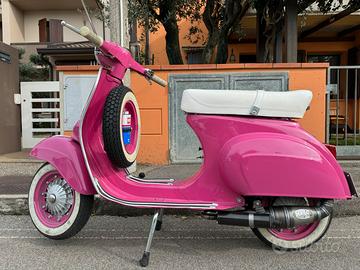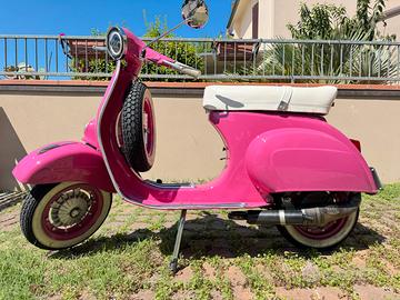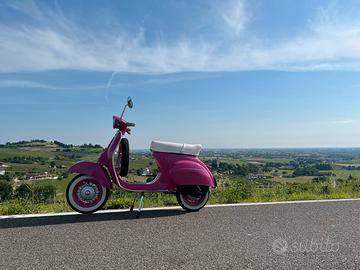Vendo Vespa 50L rosa shocking, colore originale piaggio ma No matching. Ruote special. 102 polini, scarico barone, carburatore 24. Manubrio con contachilometri grande modello primavera. Perfetta