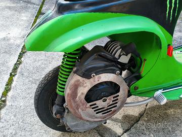 Vespa 50L sprovvista di numero telaio (la punzonatura è stata segata via ed è in mio possesso) usata in pista e per spostamenti nel paddock ESCLUSIVAMENTE IN AREE PRIVATE. Di lecita provenienza senza librettino, motore completo e libero ma attualmente non parte perché ferma in box da 5 anni. Nessuna ruggine, si vende così come in foto. Finché vedete l'annuncio è disponibile a Torino, zona metro Montegrappa