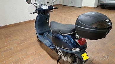 Vendo Piaggio Vespa 50LX 4 tempi 4 valvole anno 2010 km 40000 colore blu metallizzato con parabrezza e bauletto. Scadenza revisione settembre 2027. Gomme ant.30% post.80%, freni ant/post sostituiti, batteria ottobre 2025; carrozzeria con qualche graffio però senza ammaccature evidenti. Cruscotto con plastica un po' danneggiata dal sole. Qualche volta lo scooter ha difficoltà di avviamento con l'accensione elettrica; quando non si accende, lo scooter parte comunque sempre con la pedalina. Posso inviare altre foto su richiesta. Essendo una vendita tra privati non posso fornire alcuna garanzia. Visibile Firenze Galluzzo. SCUDO VERDE FIRENZE: questo scooter può circolare all'interno dello scudo verde di Firenze in quanto 4 tempi Euro2. Prezzo un po' trattabile.
