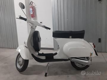 Vespa da vetrina! Modello 50 N (Sigla: V5A1T) Descrizione del veicolo: Anno: 1967 Colore: Bianco Spino Stato: Restaurata integralmente da cima a fondo ("dalla A alla Z"). Estetica: Fedelmente rivisitata nello stile della Primavera Prima Serie. Caratteristiche Tecniche: Motore: Elaborata con blocco motore 125 Primavera. Cambio: 4 marce. Condizioni: Meccanica e carrozzeria impeccabili, pari al nuovo.