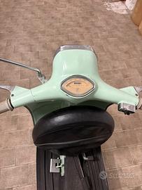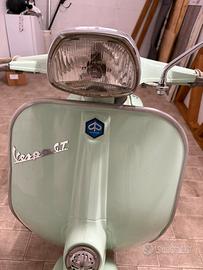 Vespa GT 125 gran turismo – colore verde pastello originale** Vendo splendida Vespa d’epoca Piaggio, modello GT, in elegante e raro colore verde pastello. La scooter si presenta in **ottime condizioni generali**, conservata con cura e sempre tenuta al coperto. **Caratteristiche principali:** * Colore originale verde pastello, molto ricercato * Sella nera in buono stato * Ruota di scorta laterale originale * Dettagli cromati e fregi presenti * Targa e documenti regolari * Motore funzionante * Carrozzeria sana, con normali segni del tempo * Interni e pedana in buono stato * Ideale sia per utilizzo che per collezionisti Perfetta per chi cerca una Vespa autentica, con fascino vintage intramontabile e pronta per essere utilizzata o valorizzata ulteriormente.
