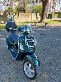 Vendo Vespa GTS 300 HPE in allestimento Touring, colore Verde Bosco/Relx La Vespa è in condizioni eccellenti, sempre riposto in garage e curato con estrema attenzione. Ha corso nei soli mesi estivi. Caratteristiche e Manutenzione: Chilometraggio: 15.250 km. Manutenzione regolare: Eseguito cambio cinghia e rulli a 10.000 km. Pneumatici: Seminuovi, cambiati lo scorso Agosto. Revisione: In regola. Bollo Pagato per tutto 2026 Allestimento Touring (Full Optional): Parabrezza originale. Portapacchi anteriore cromato originale. Portapacchi posteriore con bauletto originale in tinta e poggiaschiena coordinato alla sella. Tappettino Mantenitore di Carica Mezzo agile e divertente sia per uso cittadino che per gite fuori porta.