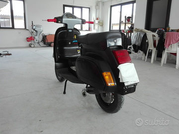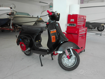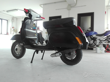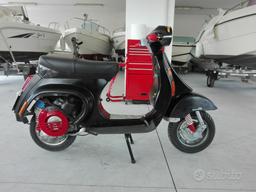 Vespa completamente restaurata, ammortizzatori RMS racing regolabili nel precarico molla, freni anteriori e posteriori Malossi Brake Power Gialle, guaine e cavi tutti nuovi, pneumatici e camere d'aria michelin nuove, sella nuova due posti. Il telaio è stato sabbiato e verniciato con pistola a compressore mediante applicazione di fondo grigio bicomponente e vernice nera bicomponente. L' intera vespa è stata rifatta sia meccanicamente che telaisticamente con tutti pezzi nuovi e di alta qualità.