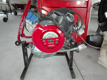 I carter motore sono stati farciti con serie cuscinetteria skf, cortechi di alta qualità nonché guarnizioni e ogni tipo di oring. Impianto elettrico semplificato, fornisco anche altro statore nuovo per ripristinare l'intera funzionalità dell'impianto come in origine. Volano HP con ghiera avviamento elettrico rimossa per portare il peso ad 1kg il tutto bilanciato staticamente.