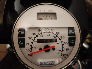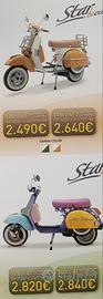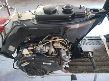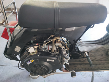 Equipaggiata con portapacchi in acciaio ant. post. salva scocche in acciaio ,cavalletto laterale Tappetino e loghi e scritte Vespa Piaggio , Cornice faro in acciaio .