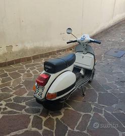 Vespa P 200 E ben conservata, sempre tenuta in garage coperto. Piccoli segni di usura ma perfetta in tutto: meccanicamente impeccabile, gomme nuove, pronta a partire. Veicolo del 1983, in mio possesso dal 1991. Documenti in regola, chilometri assolutamente originali. Dotata di miscelatore. Regalo bauletto con un anno di vita e parabrezza originale. La Vespa P 200 E è la mamma della PX 200. La targhetta PX 200 E arcobaleno che vedete in foto non è originale. Contattatemi solo se realmente interessati, grazie.