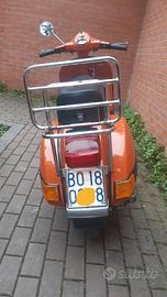 Vespa P200E Conservata Pari al Nuovo nella Rarissima colorazione Tabacco prodotta nel 1980. Modello con miscelatore automatico. La Vespa è tutta Originale ed in condizioni impeccabili con ancora visibile la targhetta in carta nel retro scudo di quando è uscita dalla Piaggio. Proveniente da collezione privata ha percorso solo 12.000 km. Questa Vespa con la sua vernice Originale e Conservata pari al Nuovo nella colorazione Tabacco è una vera Rarità. Marmitta originale Piaggio, chiave originale Neiman. La Vespa è funzionante alla perfezione. Accessoriata con portapacchi, cavalletto laterale e paraurti. Cambiati solo i freni e gli pneumatici (perché quelli originali non erano più affidabili). Vendo a 6.700 euro. Non scambio con Lambretta, Vespa Rally, GS, GL, GT, ET3, TS, Primavera, Special, Sprint, ecc.