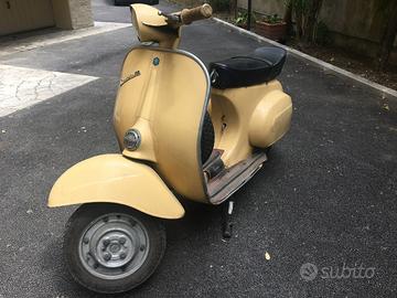 La carrozzeria ha questo colore avorio, con tutti i difetti di una vespa che ha 50 anni. É la versione 50 L, 3 marce, con fanale rotondo. Ha il libretto. La vendo a questo prezzo, solo interessati.