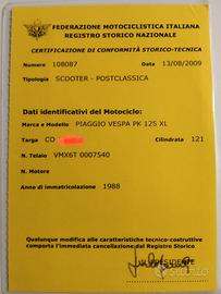 Rara Vespa Piaggio pk 125 XL del 1988 iscritta FMI con meccanica in perfetto ordine colore originale mai restaurata no ruggine pochi km 22000