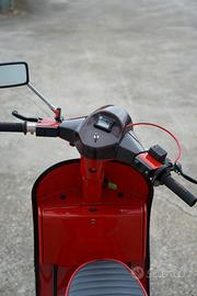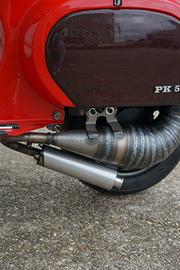 Vespa PK 50 S unica nel suo genere. Parafango, Nasello e bandinelle tutte fatte a mano in carbonio preservando l'estetica come originale. Il telaio è completamente stato restaurato senza utilizzare stucco e verniciato dello stesso suo colore originale "rosso Cina" . Alla vespa è stato installato un freno a disco completo di tubi in treccia, ammortizzatori yss anteriori e posteriori regolabili a ghiera. L'impianto elettrico è stato rifatto, con istallazione batteria e lampadine a led con relativi fusibili.