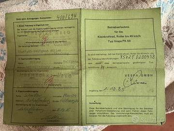 Documenti tedeschi originali (Betriebserlaubnis) presenti, da immatricolare in Italia o tramite pratica storica FMI/ASI.